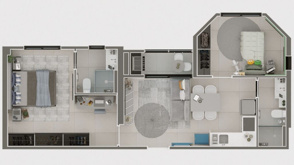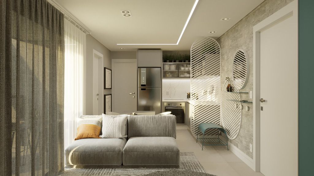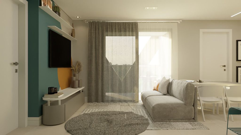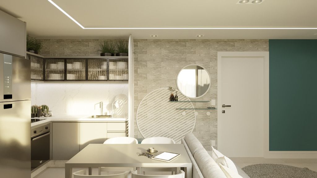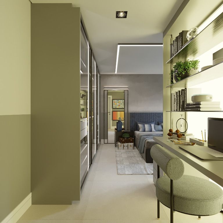 - Apartamentos compostos por 2 dormitórios, sendo uma suíte e banheiro social. Sala de estar, cozinha e serviço integrados, sacada com churrasqueira e uma vaga de garagem.